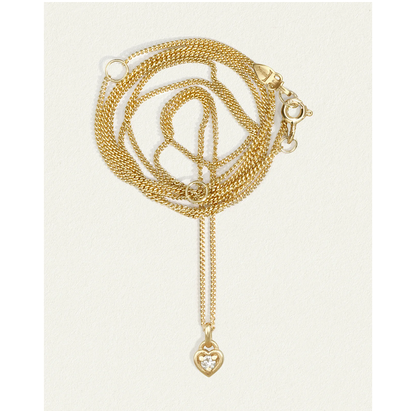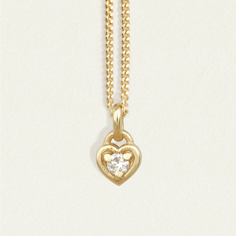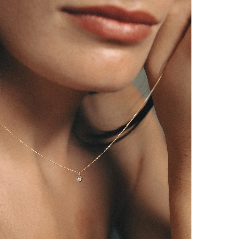 ハート型のペンダントが愛の永遠の輝きを象徴し、そのデザインは新たな始まりを祝福します。